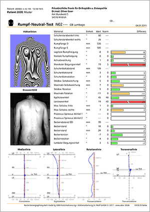 Auswertung der lichtoptischen Wirbelsäulenvermessung mit dem ABW-Mapper